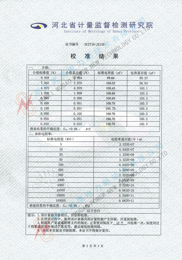 10、空電極杯校準功能。測量空電極杯的電容量和介質損耗因數(shù),以判斷空電極杯的清洗和裝配狀況。校準數(shù)據(jù)自動保存,以利于相對電容率和直流電阻率的精確計算。